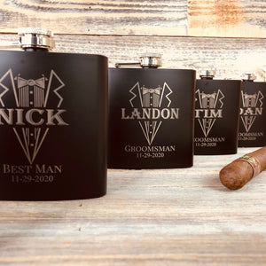Give your groomsmen this sleek personalized flask with matte black finish that's perfect for any pocket.
