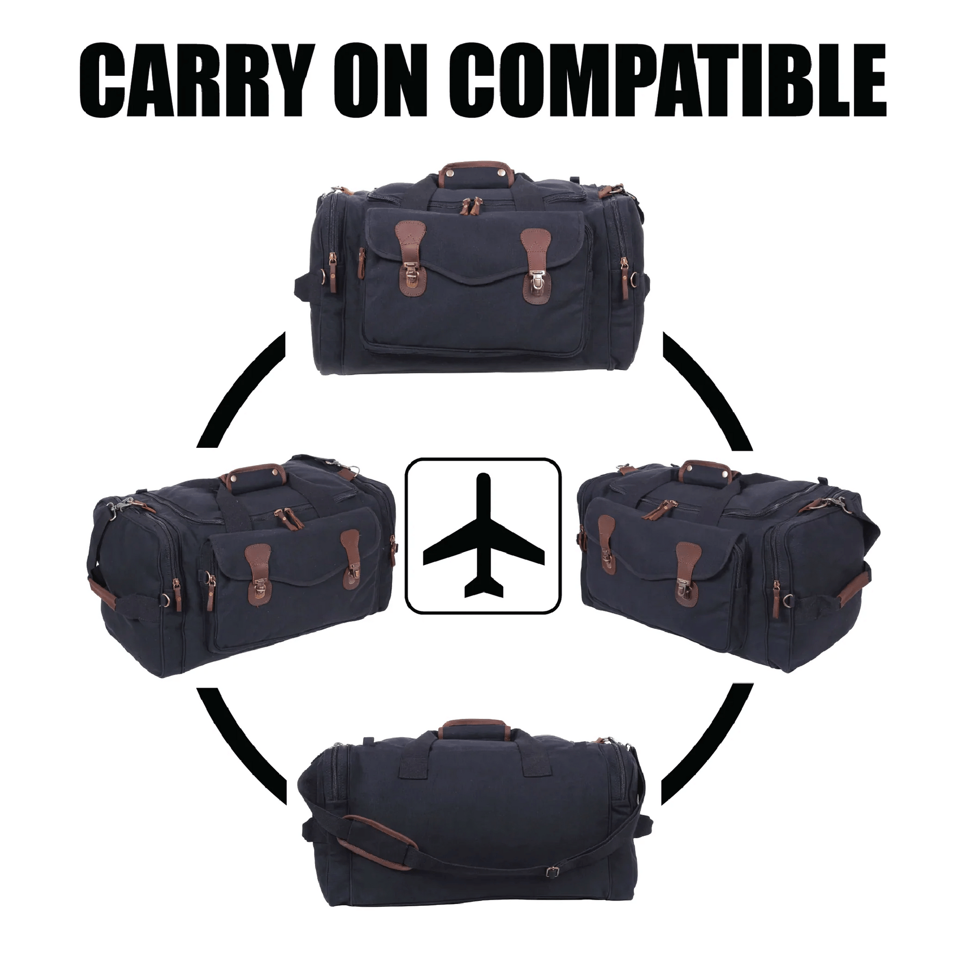 - Materials: Premium cotton, polyvinyl interior lining, leather trim, and pulls
