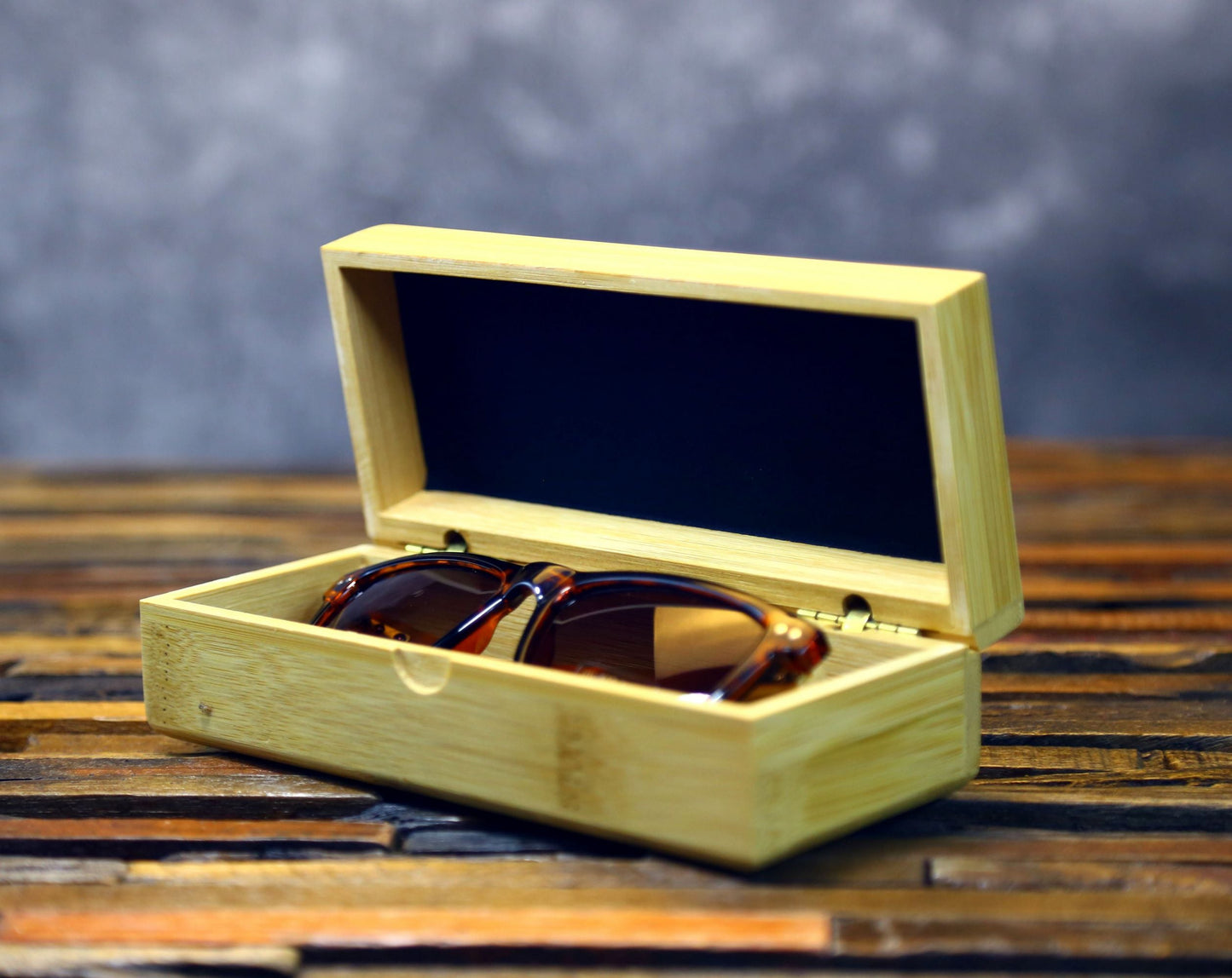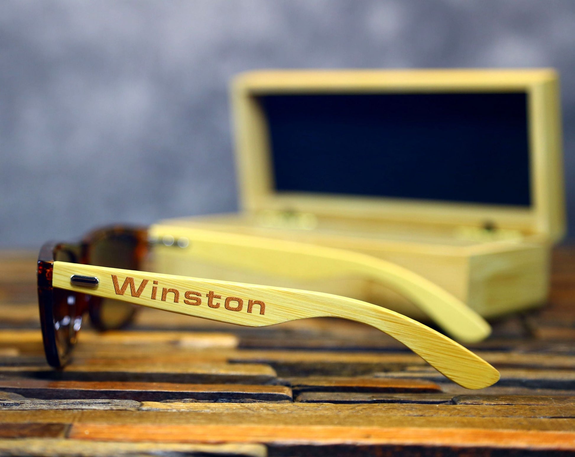 Give your groomsmen sunglasses they'll actually wear long after the wedding. These custom bamboo shades feature genuine wood construction with UV400 protection, perfect for bachelor parties, beach weddings, or everyday use.