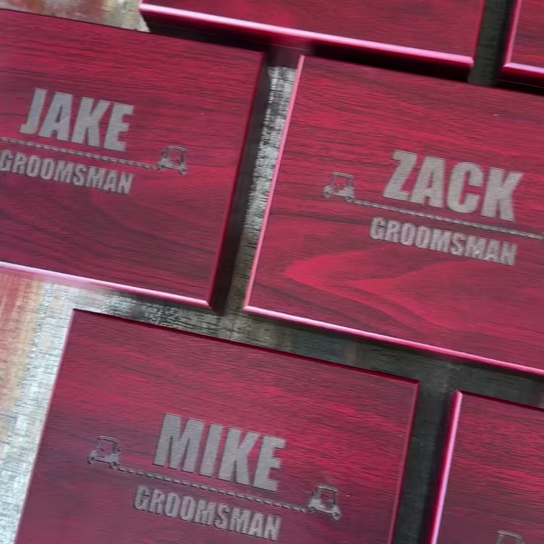 We make custom groomsmen gifts that feel personal, thoughtful, and built to last. Using precision laser engraving and high-quality materials, each gift is crafted to reflect your story, and theirs.