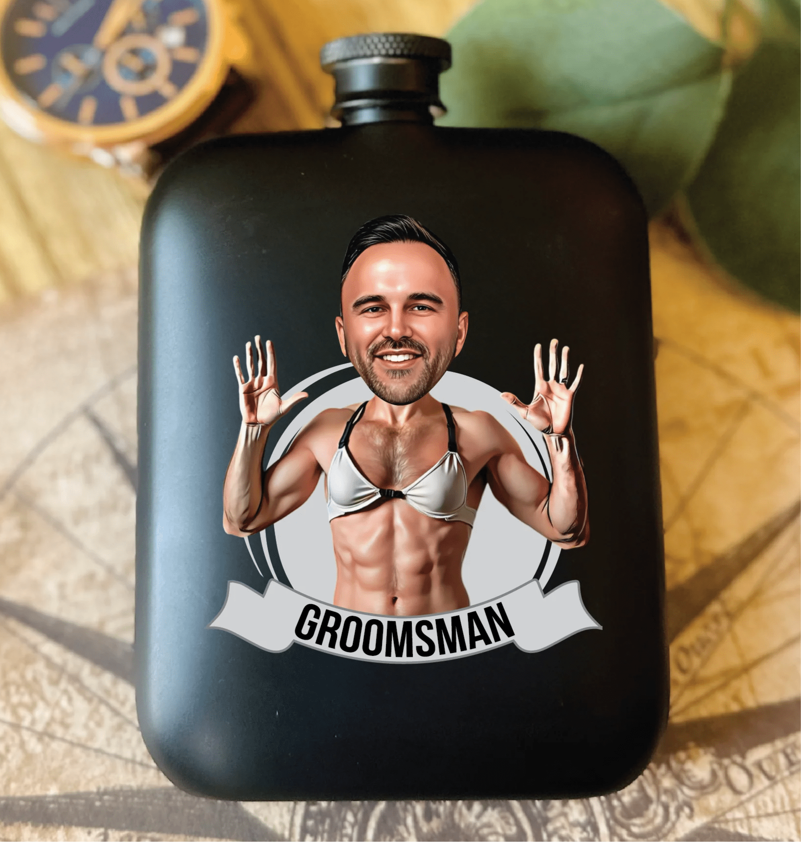 Give your groomsmen the Groomsman Grins Flask that delivers laughs and memories with personalized photo keepsakes.
