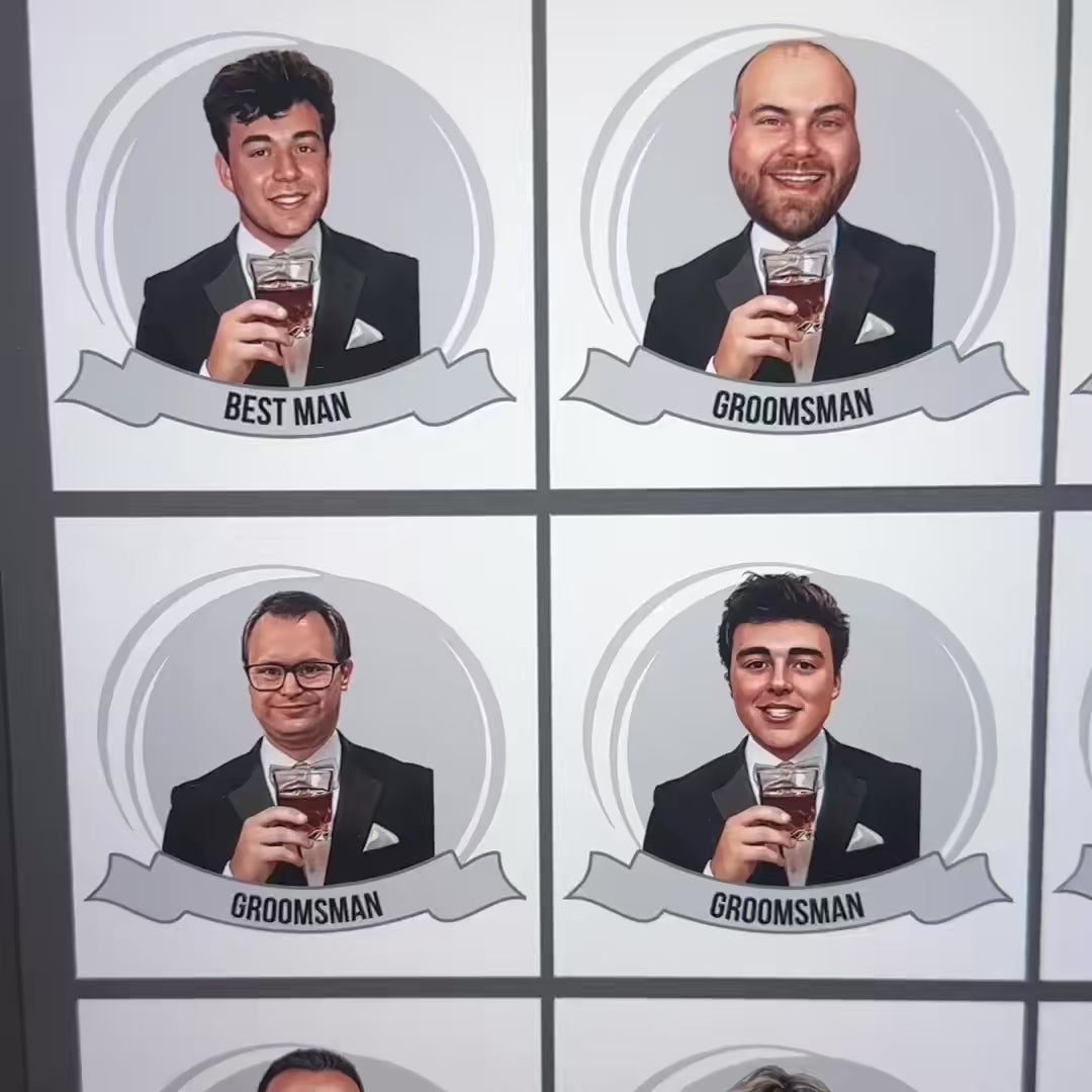 This custom flask transforms each groomsman's photo into a functional and entertaining centerpiece that captures wedding joy and camaraderie.