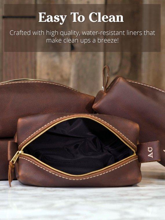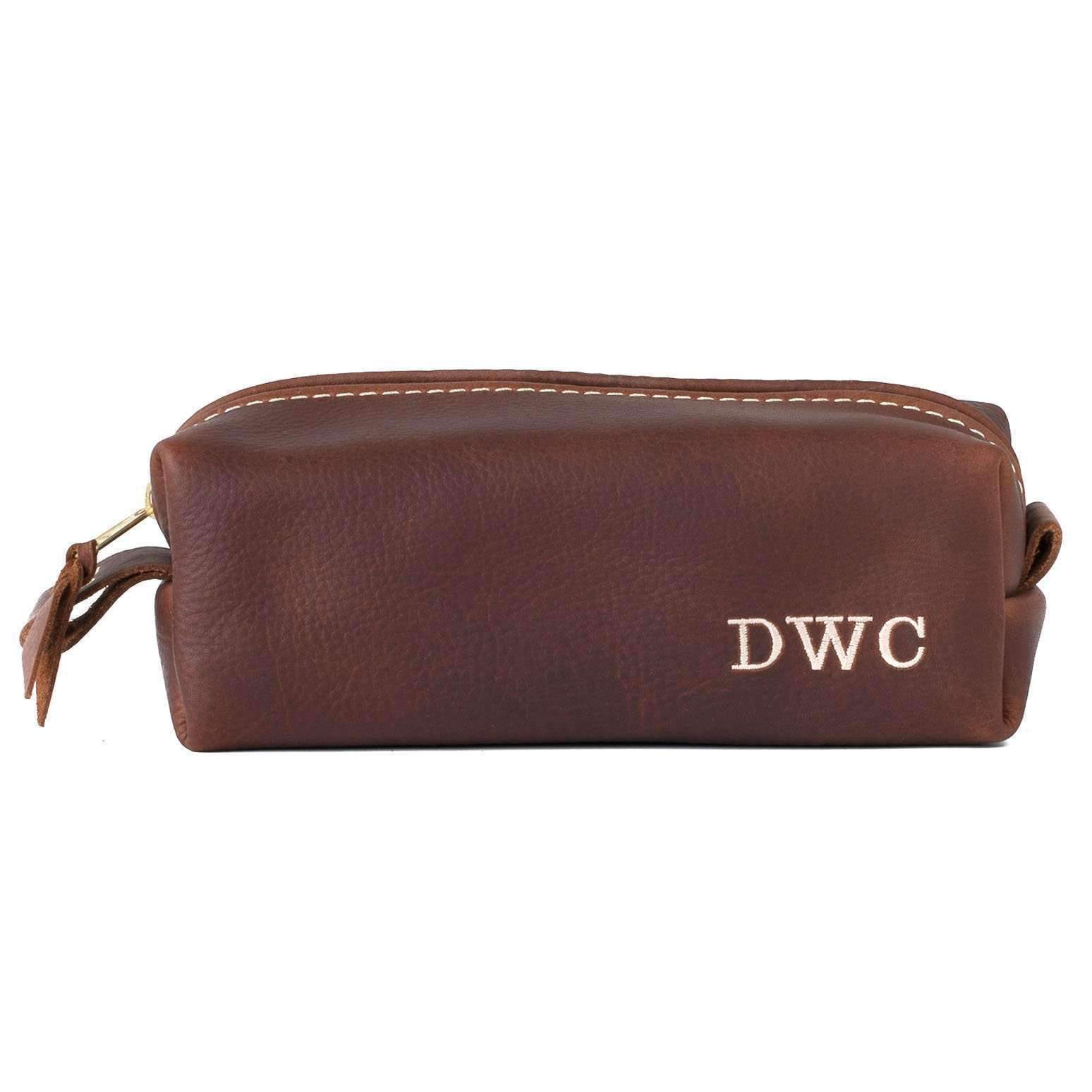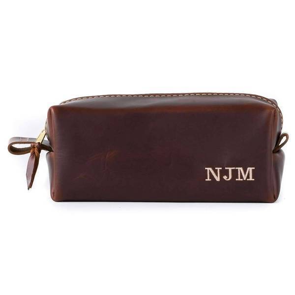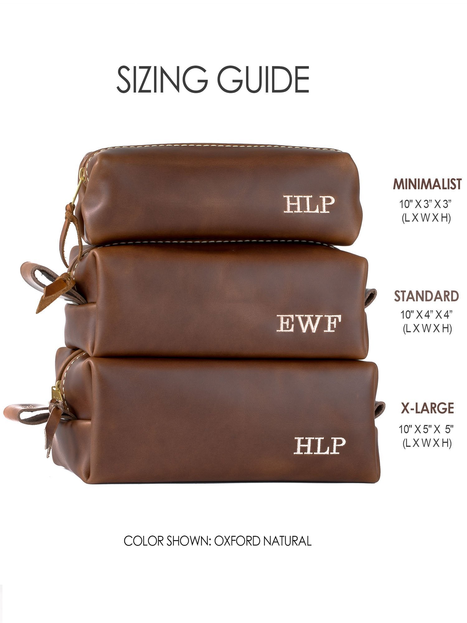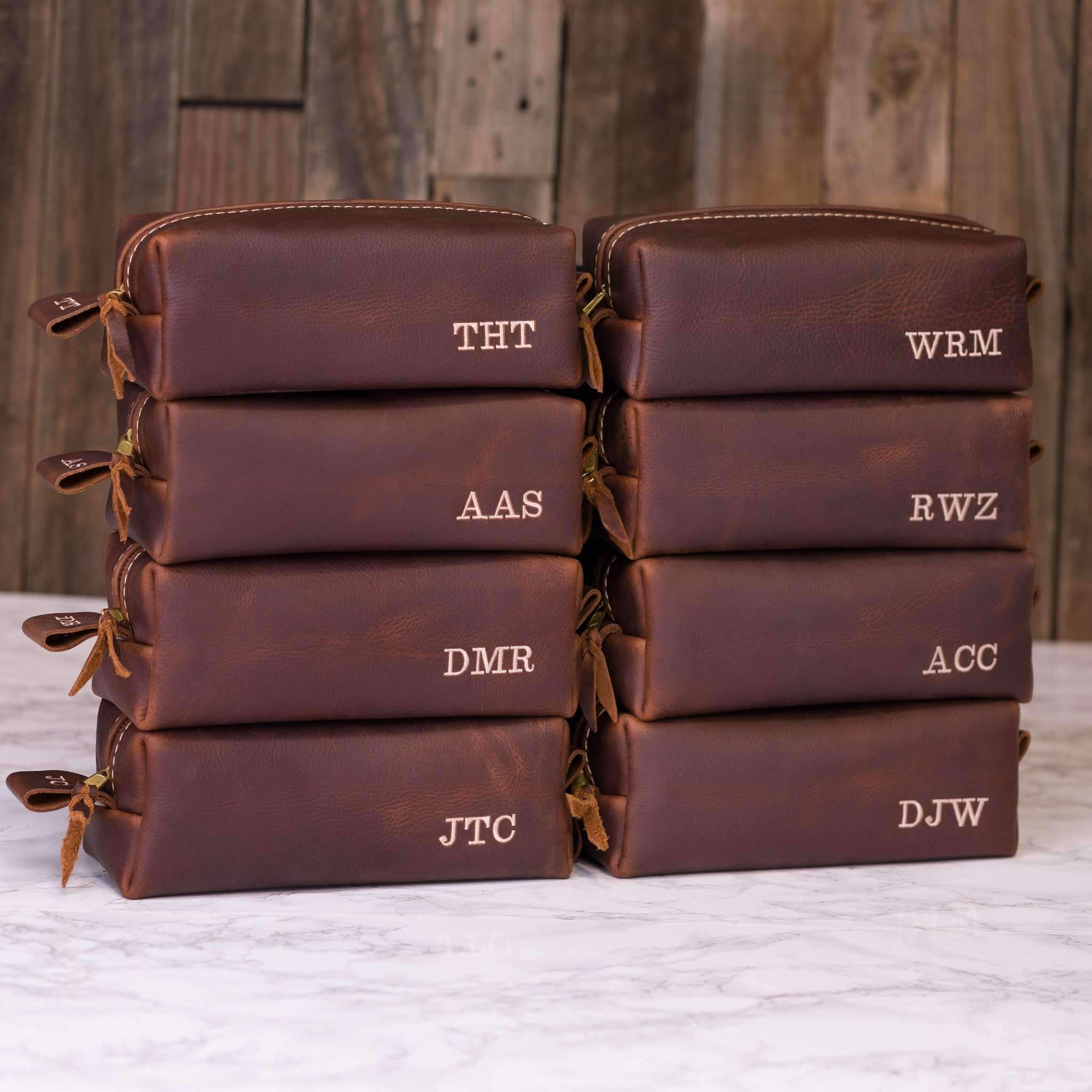 Give your groomsmen a toiletry bag they'll use for years. This full-grain leather dopp kit keeps grooming essentials organized for the bachelor party, wedding weekend, and every trip after. Hand-cut and hand-stitched from premium leather with a water-resistant black nylon liner, it features a heavy-duty brass YKK zipper and spacious interior.