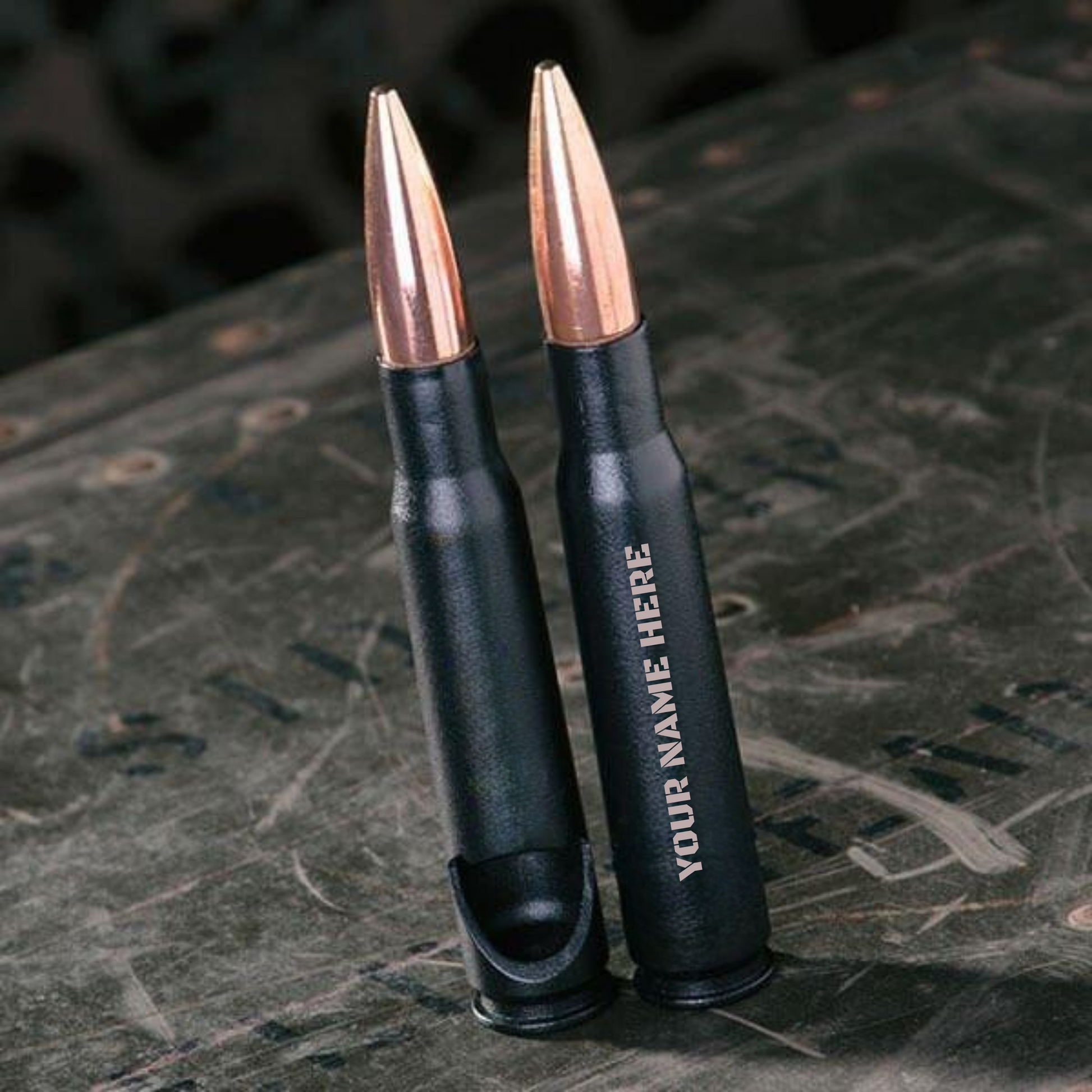 Give your groomsmen a military-inspired proposal experience with this rugged set featuring engraved wood draft card and metal bullet-shaped bottle opener.