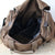 Constructed from durable 100% cotton canvas with leather accents and brass closures, this rugged bag features a spacious main compartment, exterior flap pocket, and two zippered side compartments for organized packing.