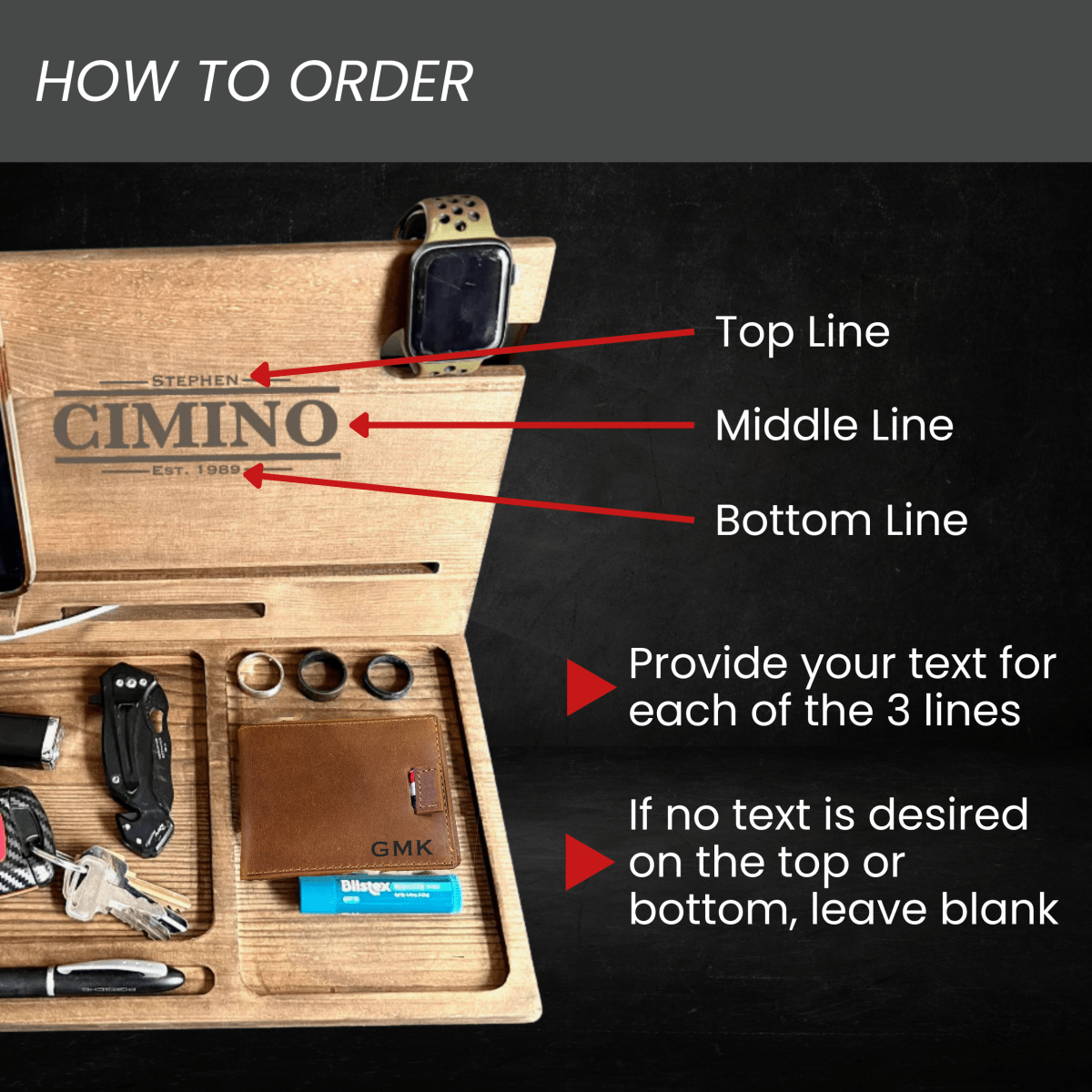 Give your groomsmen this personalized wood docking station that keeps all their daily essentials organized and ready to go.
