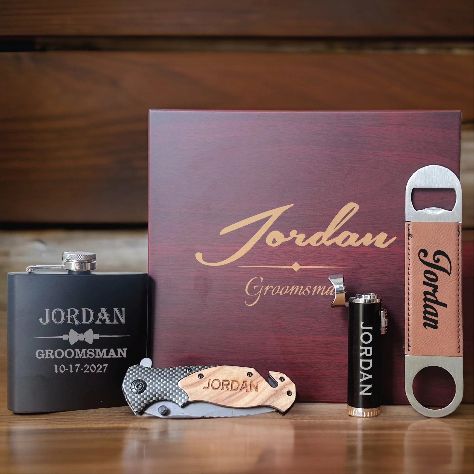 Equip your groomsmen with a personalized gift box filled with practical tools they'll use for years.