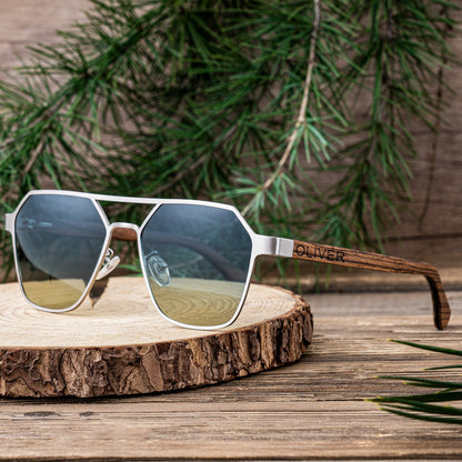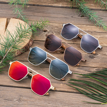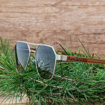 Give your groomsmen custom wooden sunglasses that stand out. The Mavericks feature genuine Zebra Wood legs paired with a durable steel lens frame, creating a unique accessory they'll wear long after the wedding.