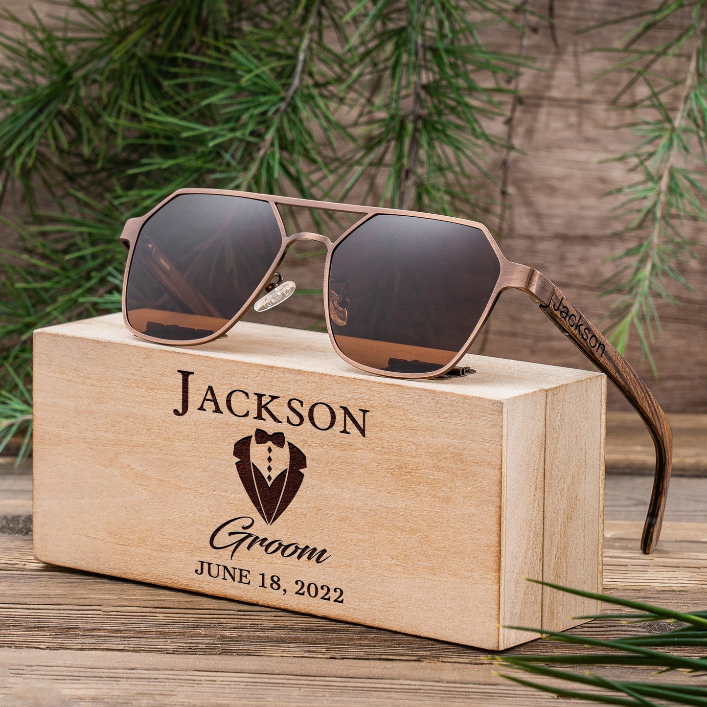 Perfect for bachelor parties, wedding day photos, or honeymoon destinations. Each pair can be personalized with custom engraving, making these sunglasses a memorable gift that shows your crew how much their support means to you.